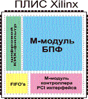 Из сопоставления данных табл. 2 и табл. 3 видно, что после реализации модуля БПФ на рассмотренных кристаллах остаются значительные свободные вентильные ресурсы, которые можно использовать для создания в той же ПЛИС дополнительных устройств пользователя, например, встроенного контроллера шины PCI и логики сопряжения с аналого-цифровым преобразователем (рис. 6).