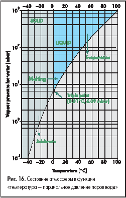 Экспозиции промышленной мебели и фурнитуры особенно многообразны. Все столы, стойки, технологическая тара и т. п. выполнены обязательно в антистатическом исполнении. Фирма Andreas KARL GmbH &Co. пошла дальше — она поставляет рабочие столы с встроенными источниками питания на различные напряжения и мощности, с приборами для электрических измерений (вольтметры, амперметры) и удобными клеммами и розетками для любого вида подключений. Предлагаются сушильные шкафы термической и вакуумной сушки, шкафы для хранения электронных изделий в осушенной среде (влажность менее 12%), установки для вакуумной упаковки (фирма McDry). Фирма PINK Thermosysteme предлагает весь ряд такого оборудования, обеспечивая режим сушки или хранения, соответствующий любой точке графика «температура —парциальное давление паров воды», показанного на рис. 16.