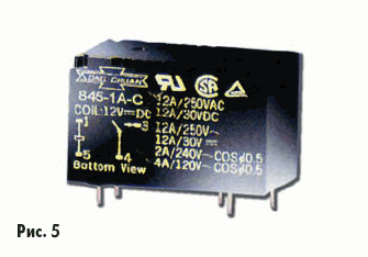 Реле (рис 5) может устанавливаться на печатную плату или в специальный разъем (типа SGR-5P или SGR-8P, в зависимости от числа контактных групп — рис.6 и 7). Реле смонтировано в герметичном корпусе и вписывается в габариты 29x12,7x18,5 мм.