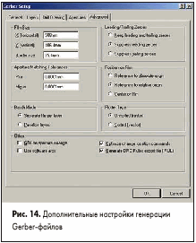 - Находясь в редакторе печатных плат,выполним команду меню File |Fabrication Outputs |Gerber Files.На экране появится диалоговое окно Gerber Setup (рис.12).