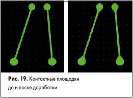 - Нажмем кнопку OK.Система автоматически изменит вид выделенных контактных площадок (рис.19).
