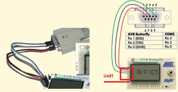 Рис. 9. Подключение AVRBFLY к PC через RS-232