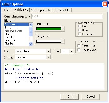 Сначала следует создать проект командой Project->New, где указывается имя проекта и путь к файлу проекта (рис.2). Теперь надо подключить файл с исходным кодом. Можно написать исходный код непосредственно в окне редактора. Редактор имеет богатый выбор опций настройки, включая выбор русского языка (рис.3).