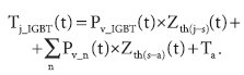 Эквивалентные тепловые и электрические параметры приведены в таблице 3. Основными элементами конструкции модуля, перегрев которых определяется в процессе моделирования, являются кристалл (j — junction), корпус (c — case), теплоотвод (s, h — sink, heatsink или f — fin). Расчет температуры кристалла IGBT Tj_IGBT будет производиться в соответствии со следующим выражением: