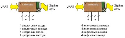 Модуль предоставляет пользователю до 16 входов и выходов, в том числе до восьми аналоговых. Каждый модуль может быть сконфигурирован как координатор, узел-маршрутизатор, либо оконечное устройство. Управление работой осуществляется через интерфейс UART с помощью AT-команд.